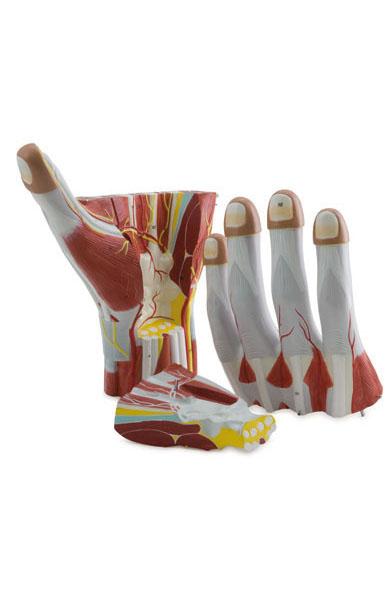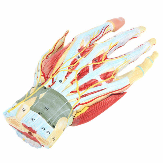 Mano con músculos, tendones, ligamentos, nervio, fascia